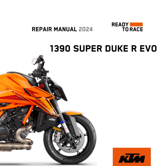 This KTM 1390 Super Duke R EVO Repair manual 2024 provides general guidance for maintenance, diagnostics, and repairs.
